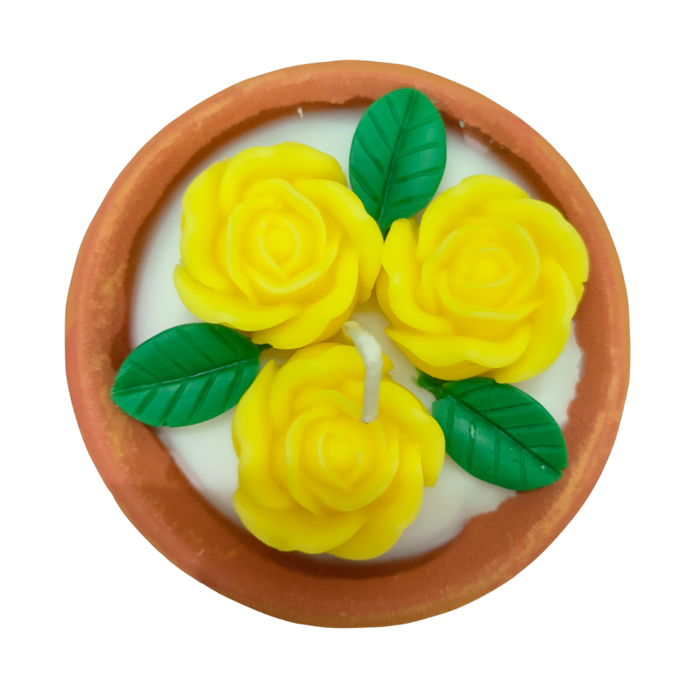 Transform your living space with the timeless beauty of the Rose Flower With Bowl Candle. Encased in a hand-crafted terracotta bowl, this candle is more than just a lighting accessory—it’s a piece of art. The delicate rose flower with lifelike leafy details adds a touch of nature-inspired charm, making it a captivating décor item for any room in your home.