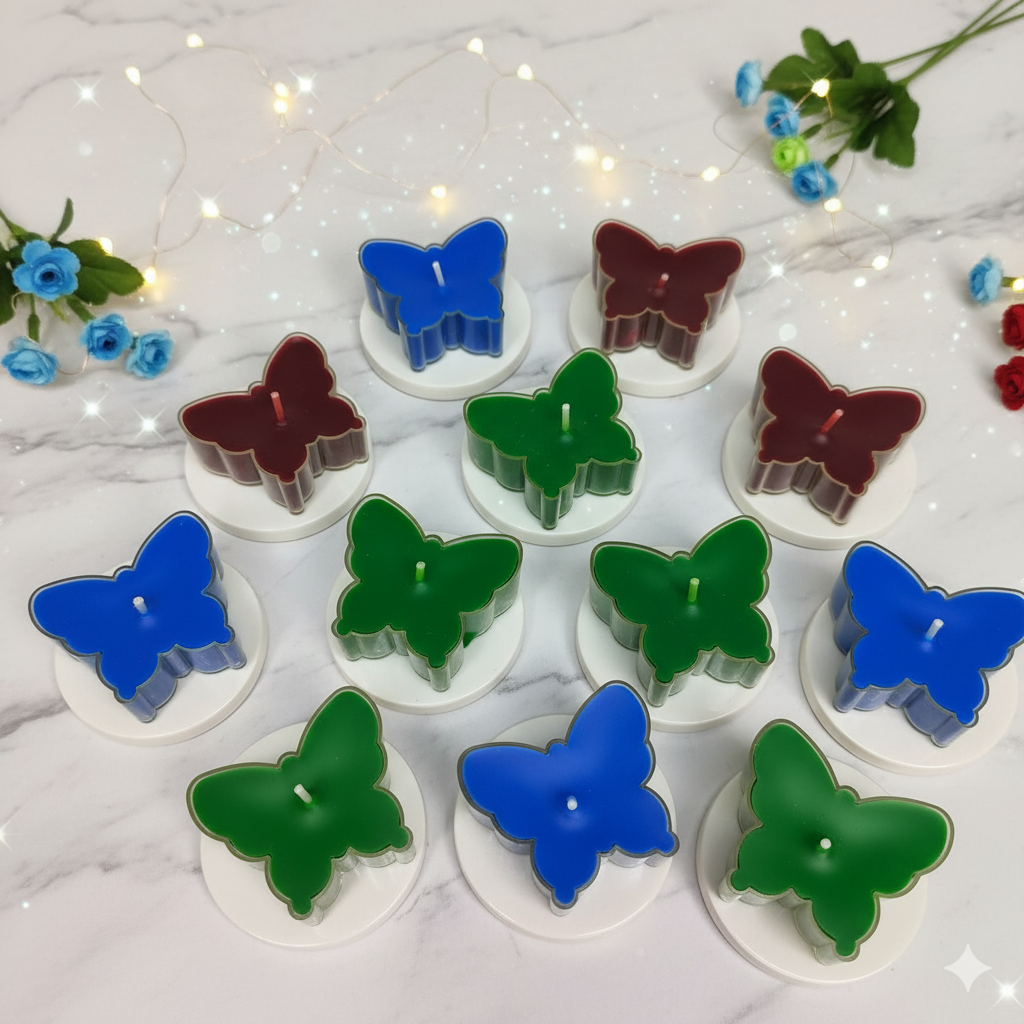 Each Butterfly Shape T-Light candle in this pack is long-lasting, ensuring hours of bright, gentle light to enhance your festive moments. The use of soy wax ensures a cleaner and slower burn compared to traditional paraffin candles, making these candles perfect for creating a serene ambiance. Whether you’re looking to light up your home for Diwali or seeking the perfect gift, the impeccable craftsmanship of these candles speaks volumes about your sophisticated taste.